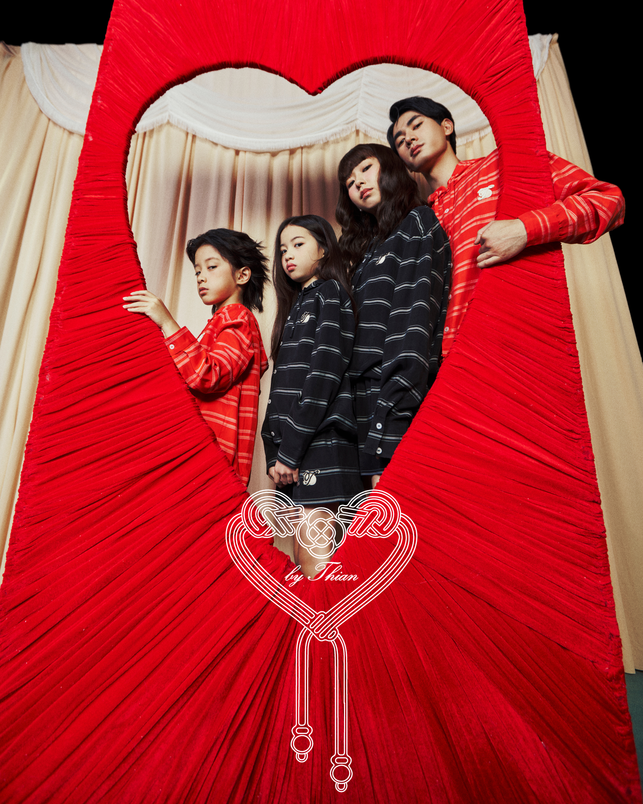 Kids Set Chinese Button Sporty Soft Hoodie Red
