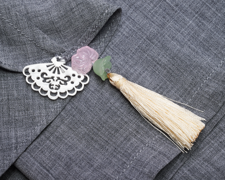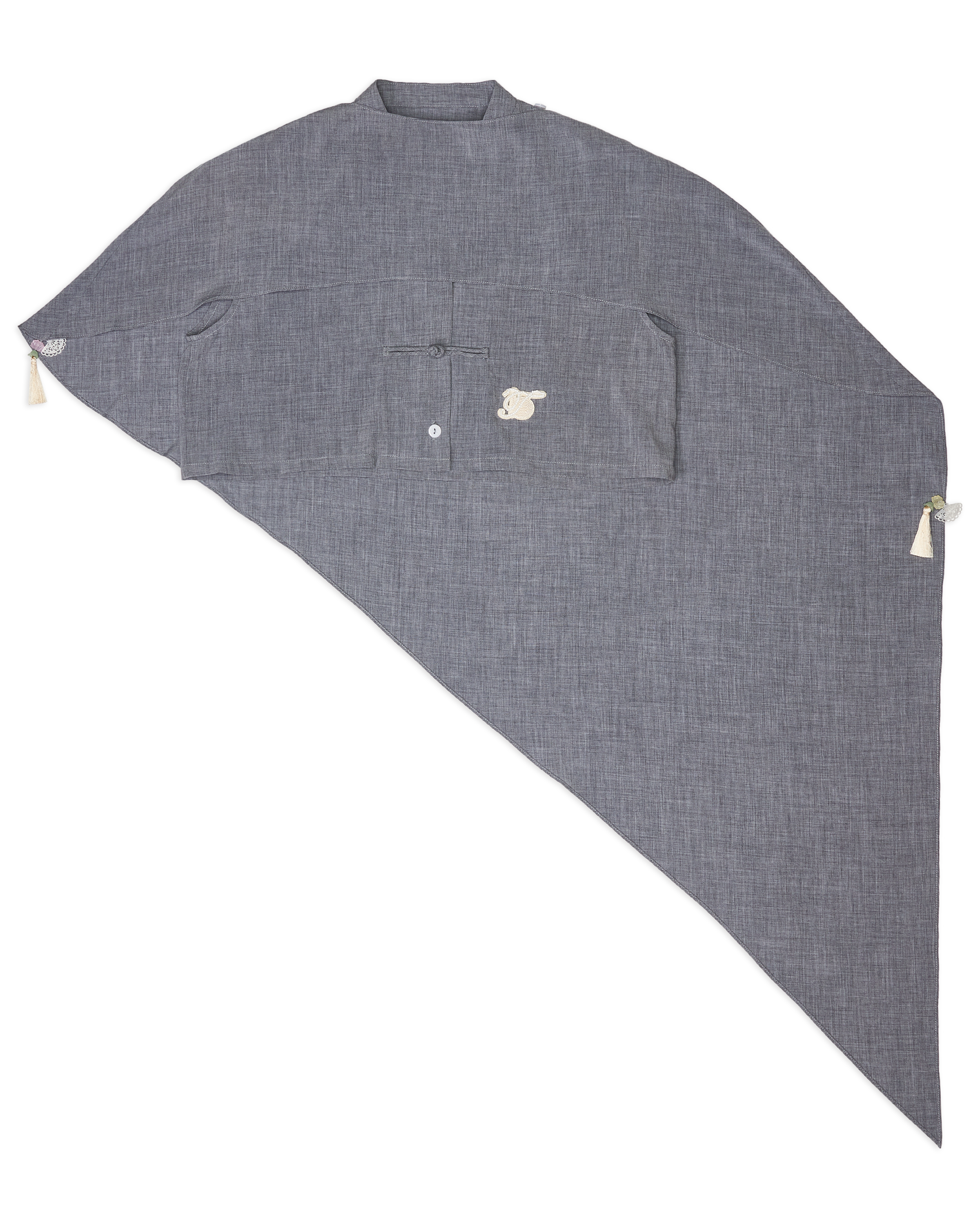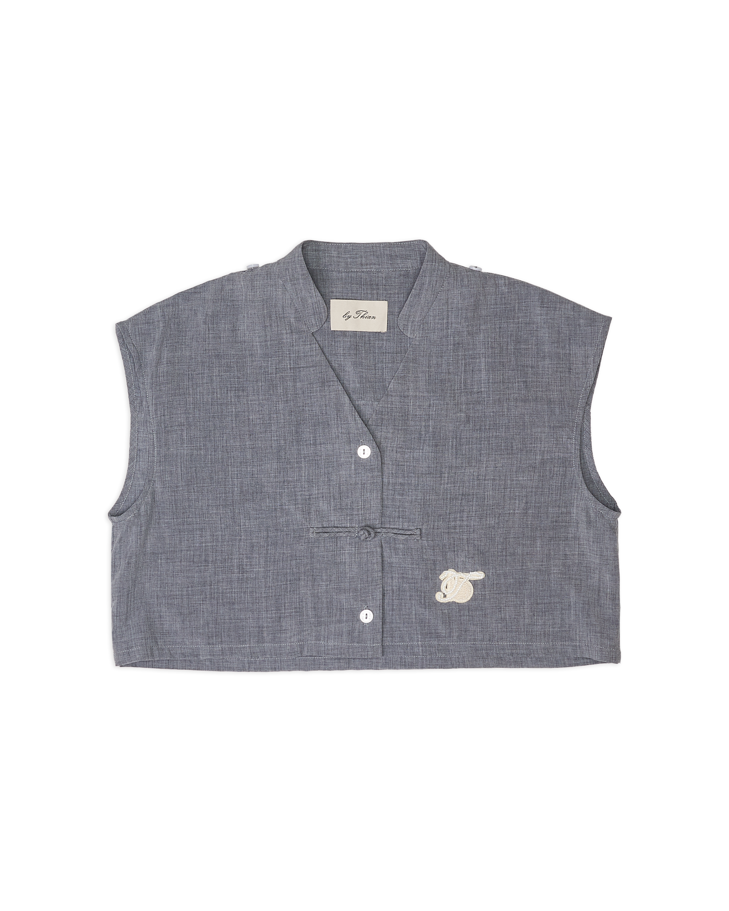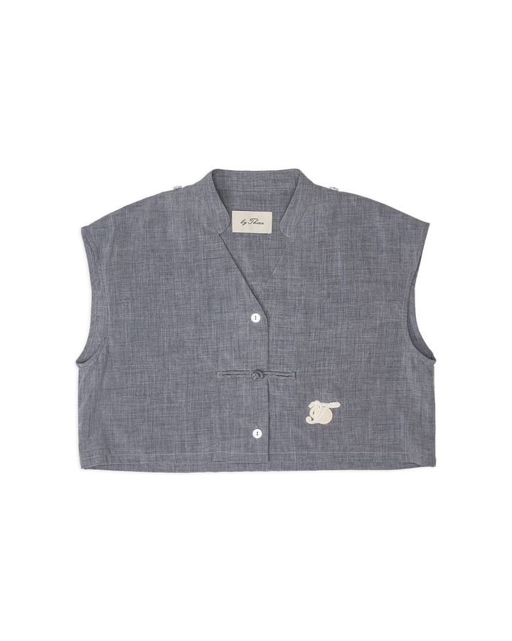 Cape Cropped Top with Chinese Button Grey