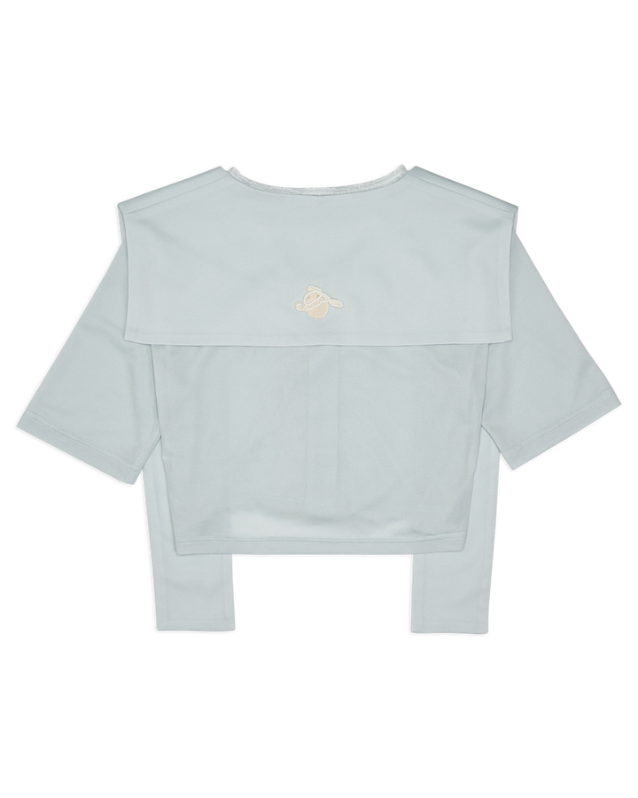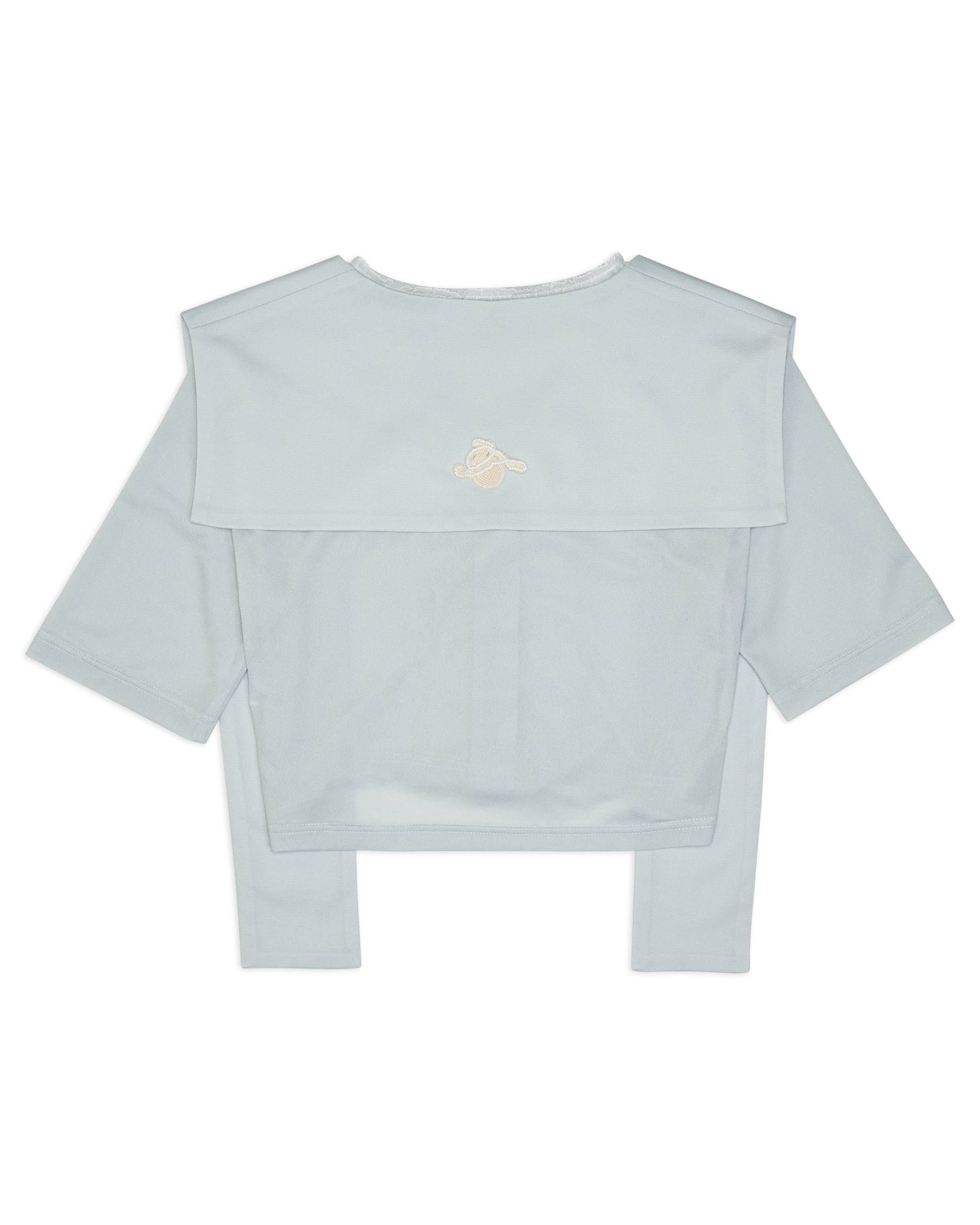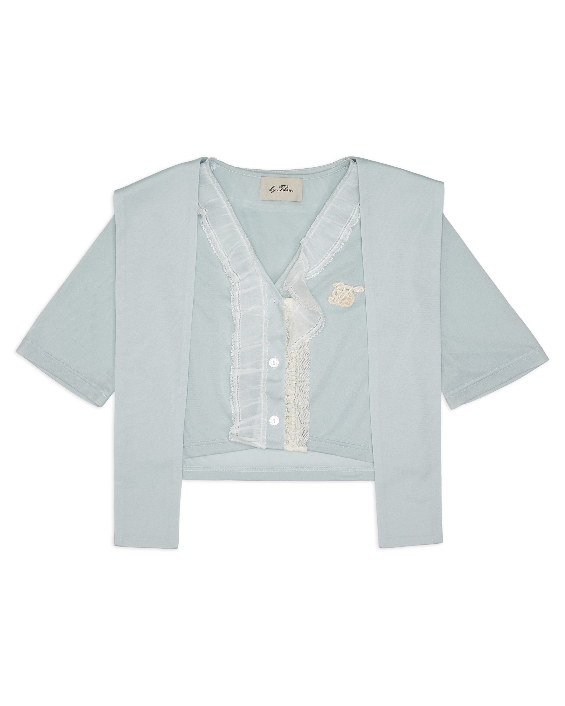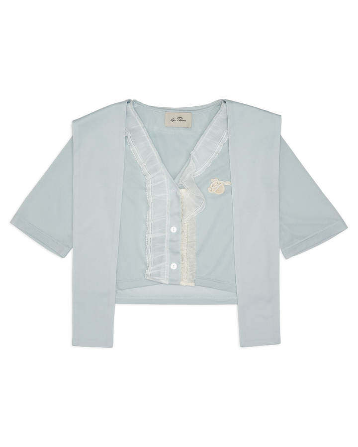 Lay Over Sheer Knit Cropped Top With Lace Turquoise