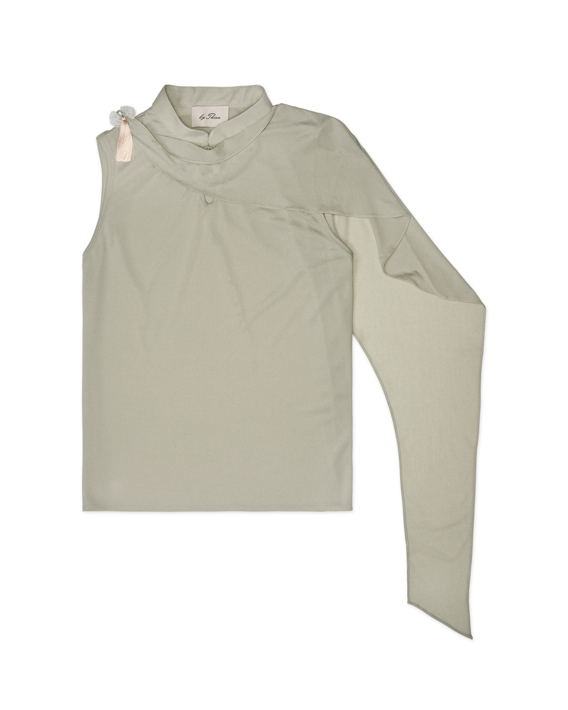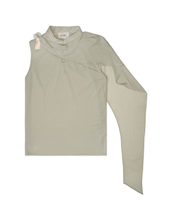Mandarine Collar with Cape Sleeveless Blouse Pastel Green
