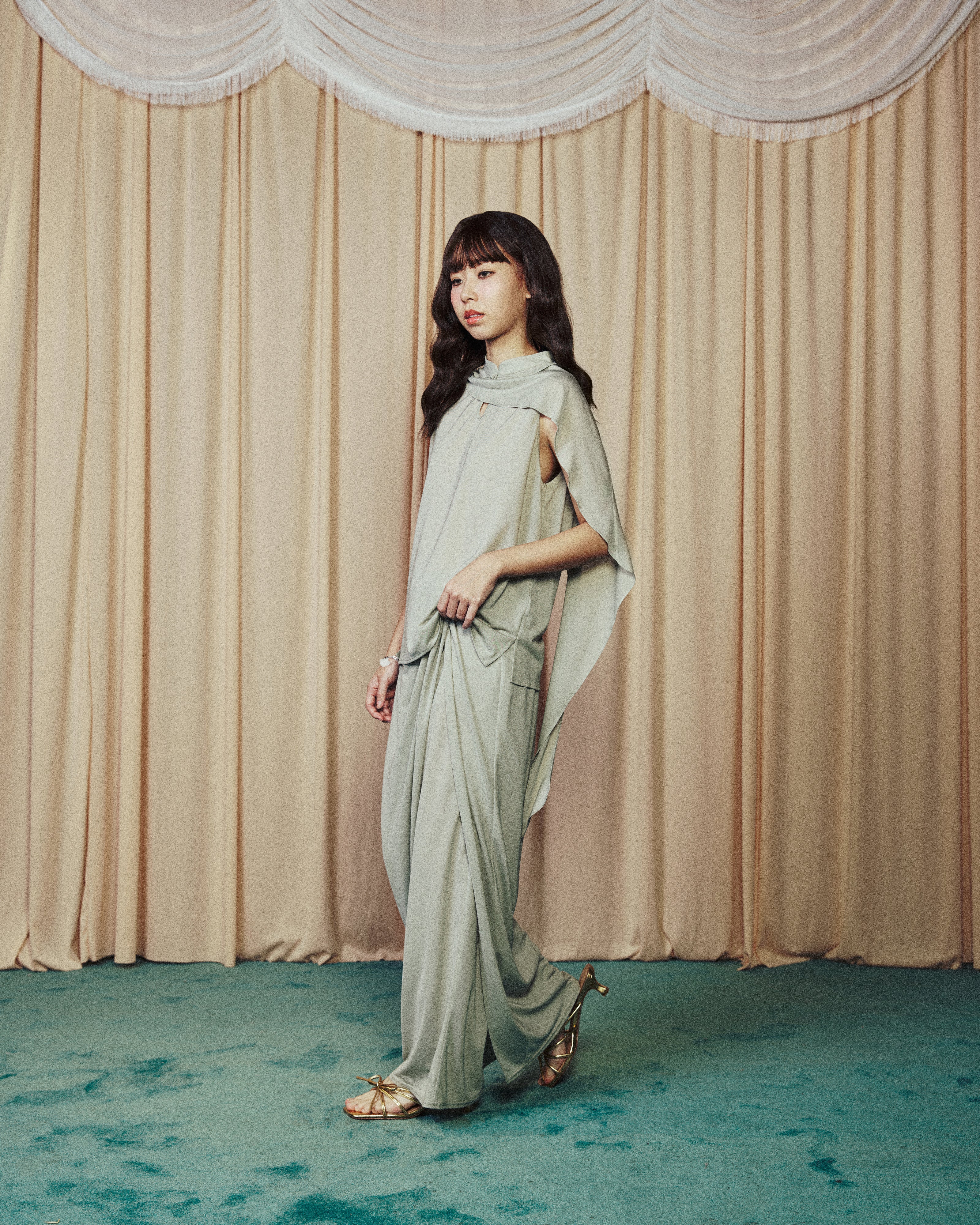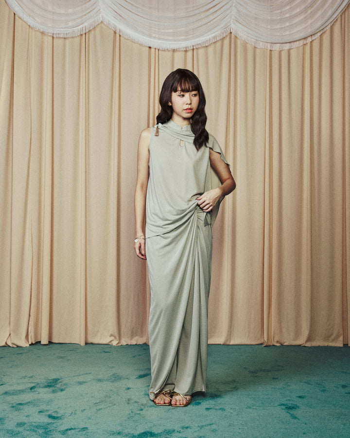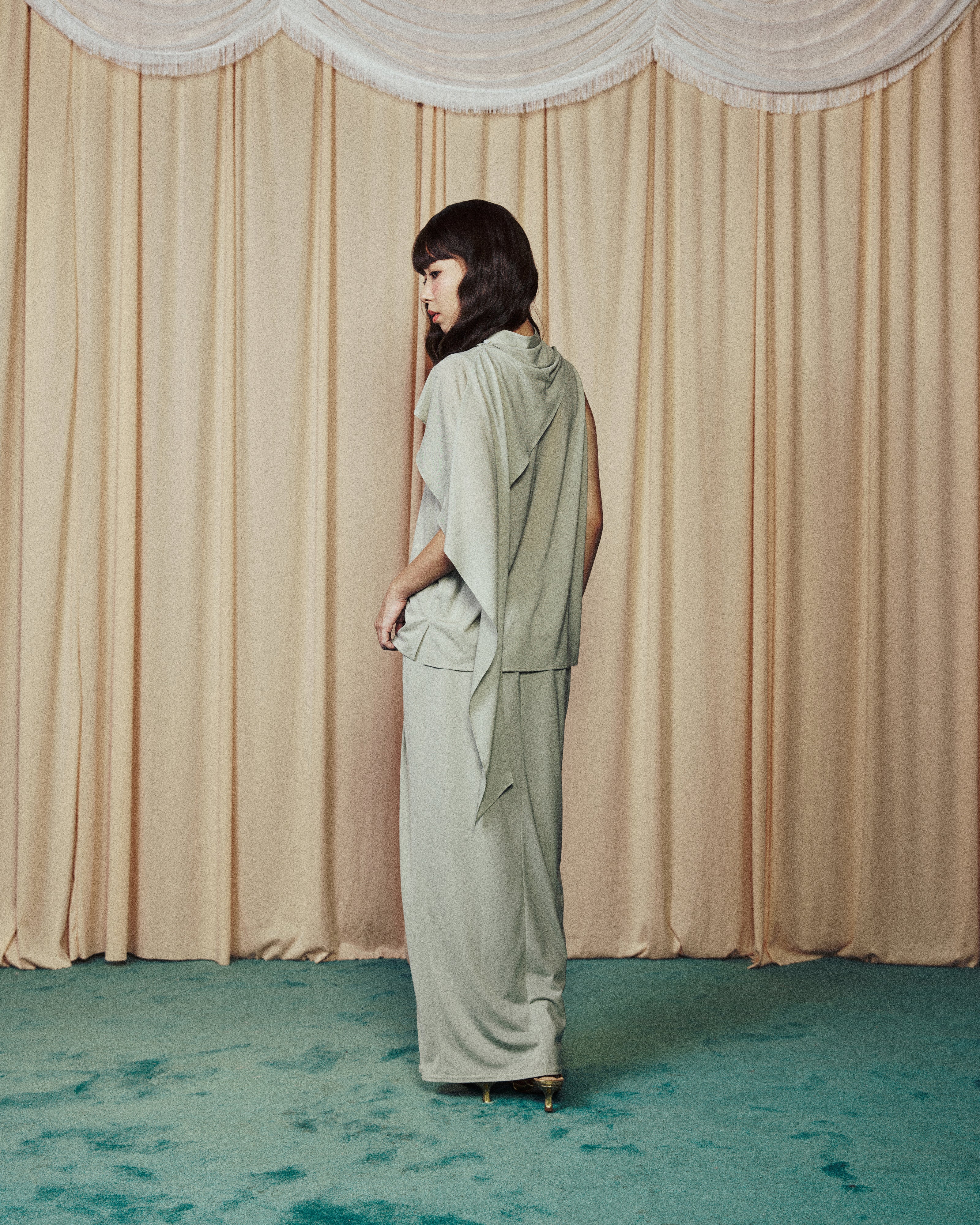 Drape Skirt Long Pants Pastel Green