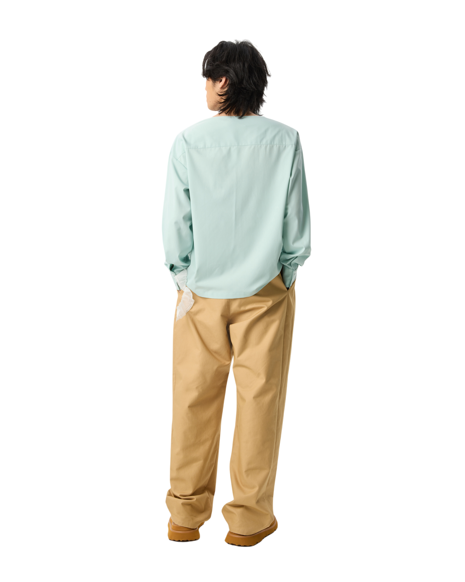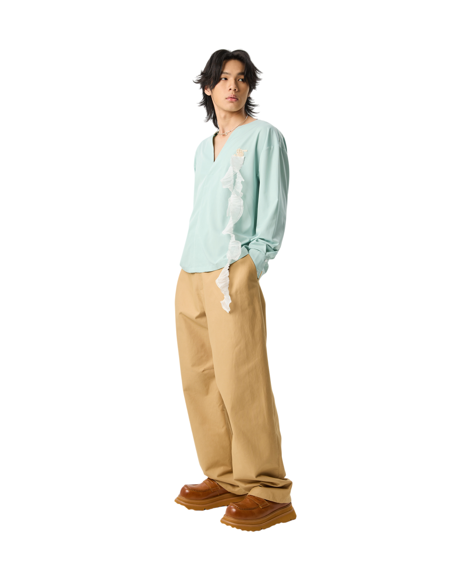 Men V-neck Long Sleeve Blouse With Lace Turquoise