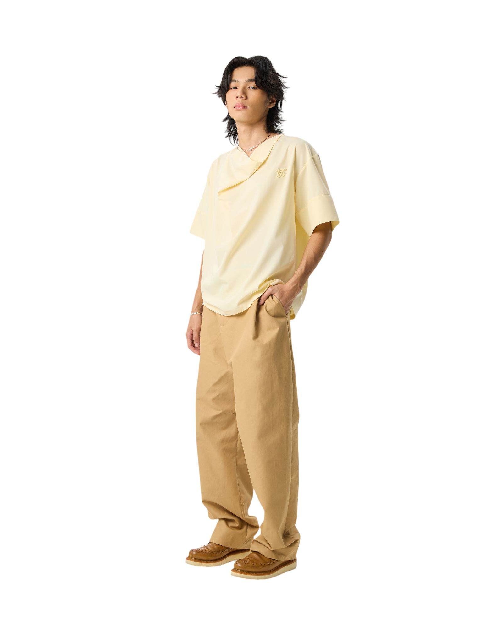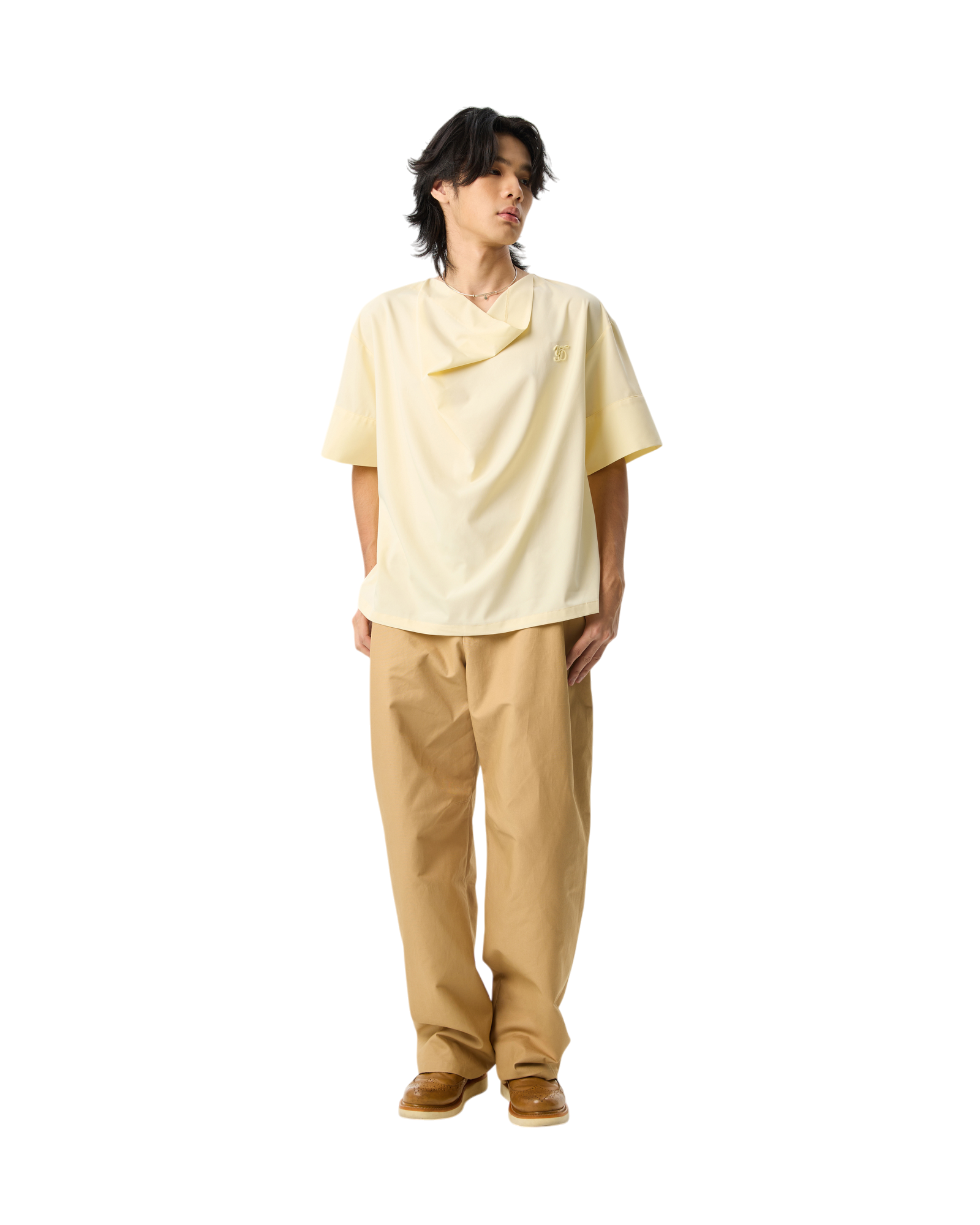 Men Draped Cowl Neck Shirts Yellow