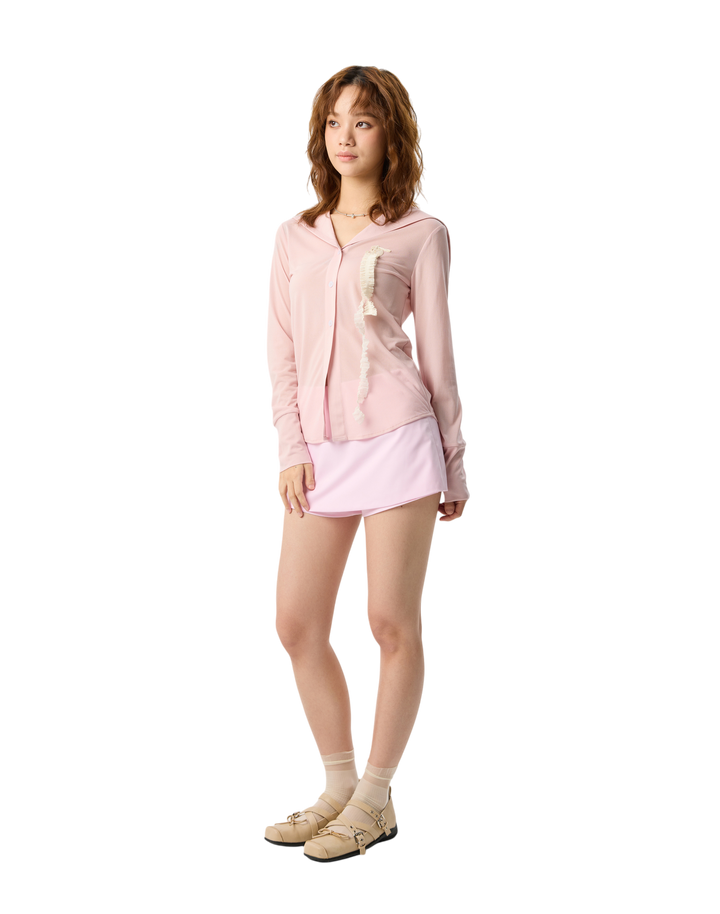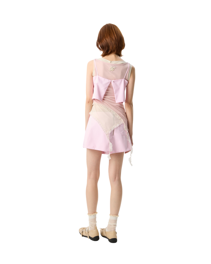 Lay Over Sheer Knit Cropped Top With Lace Cream