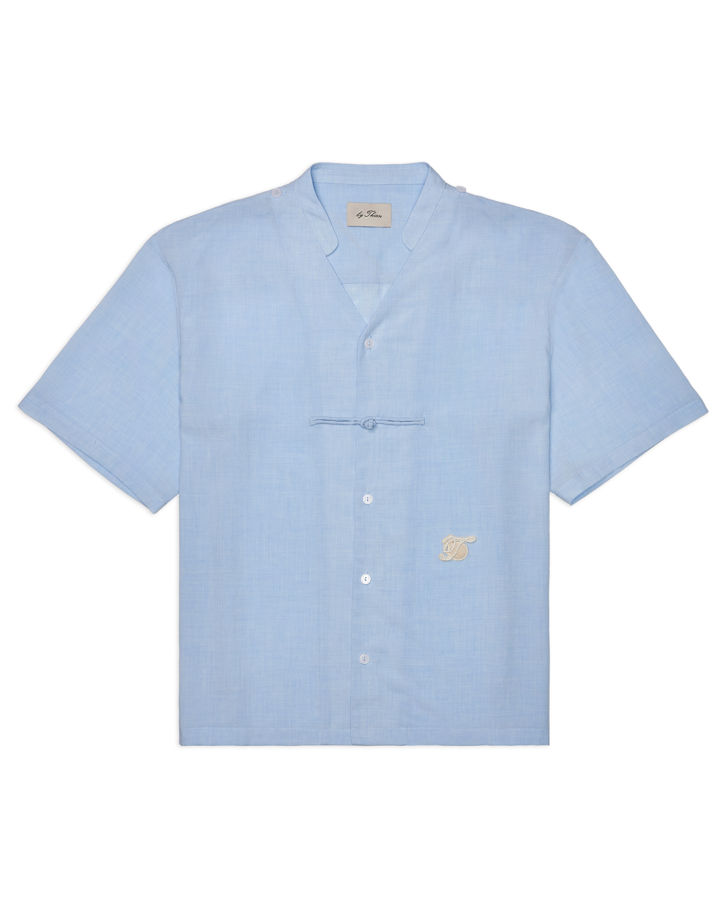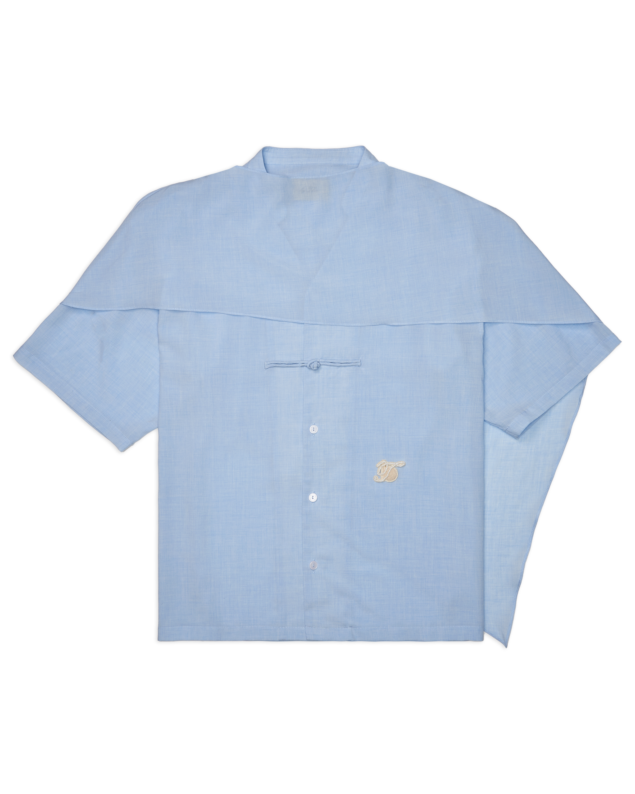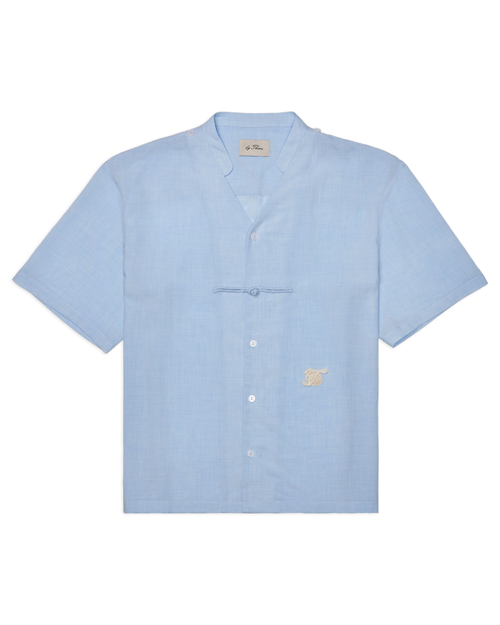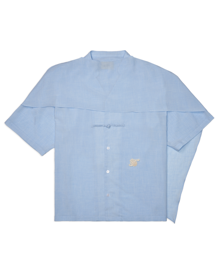 Men Cape Blouse with Chinese Button Baby Blue