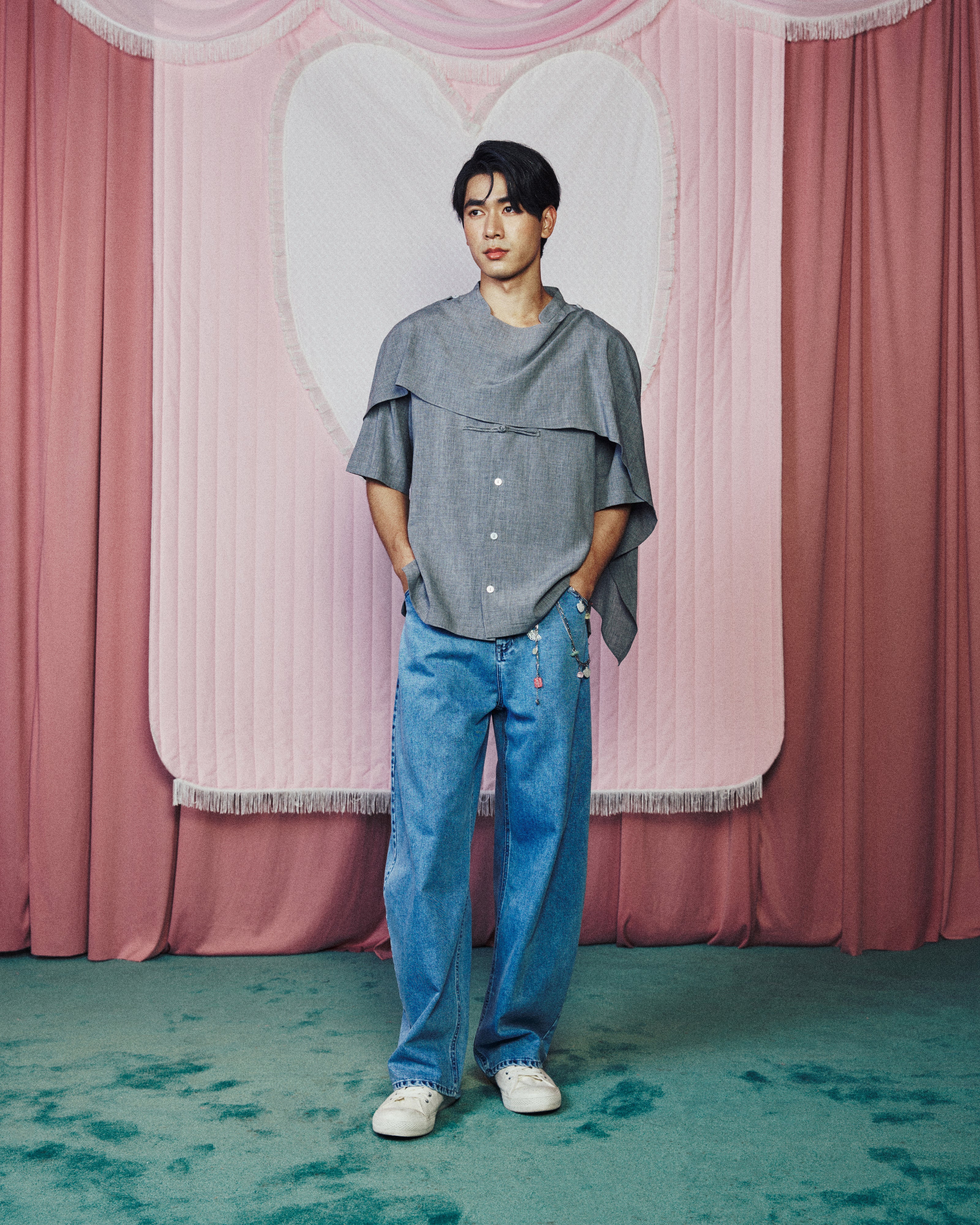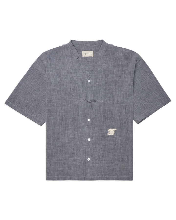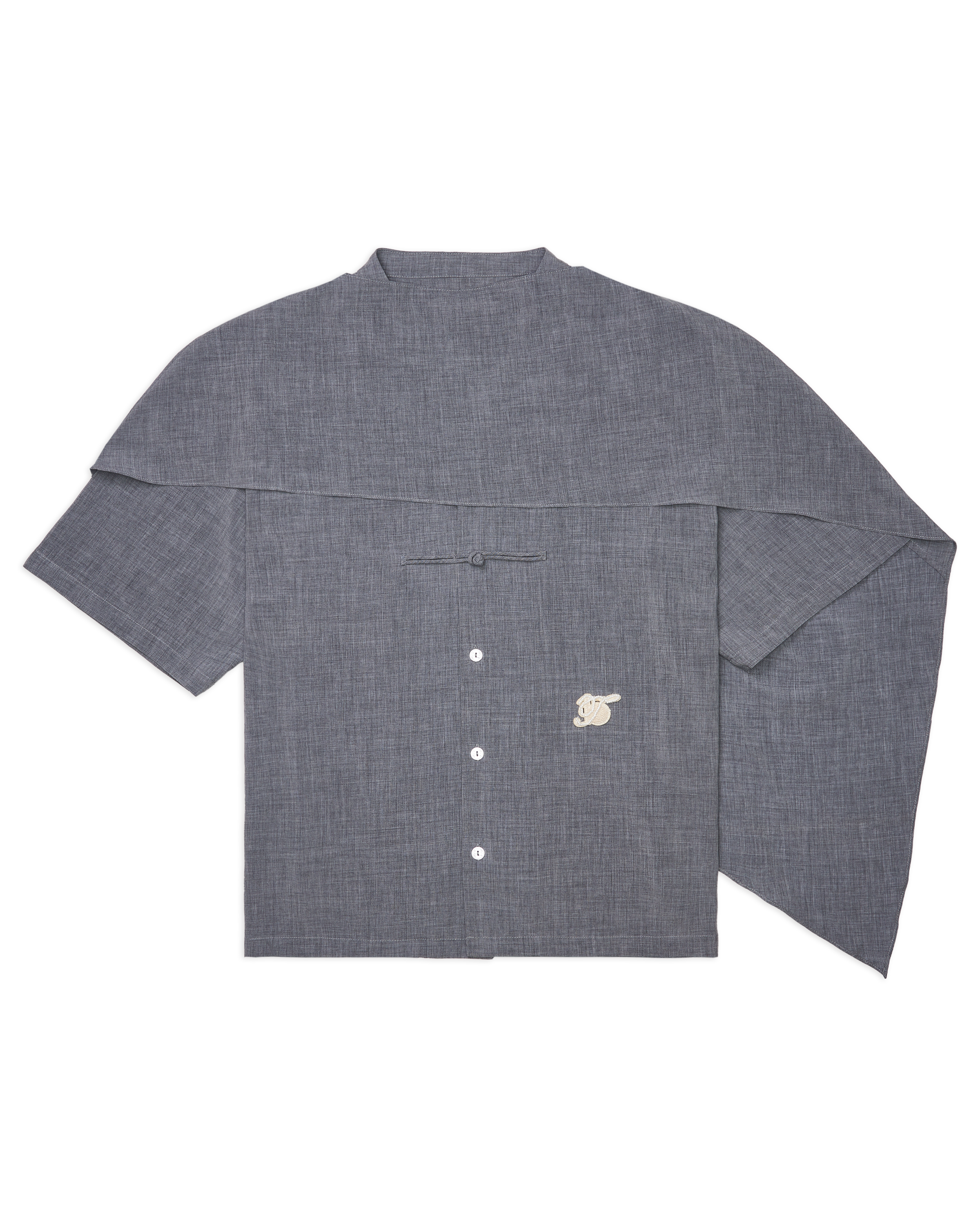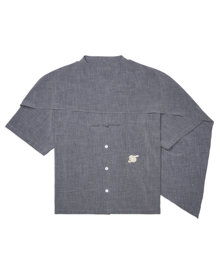 Men Cape Blouse with Chinese Button Grey