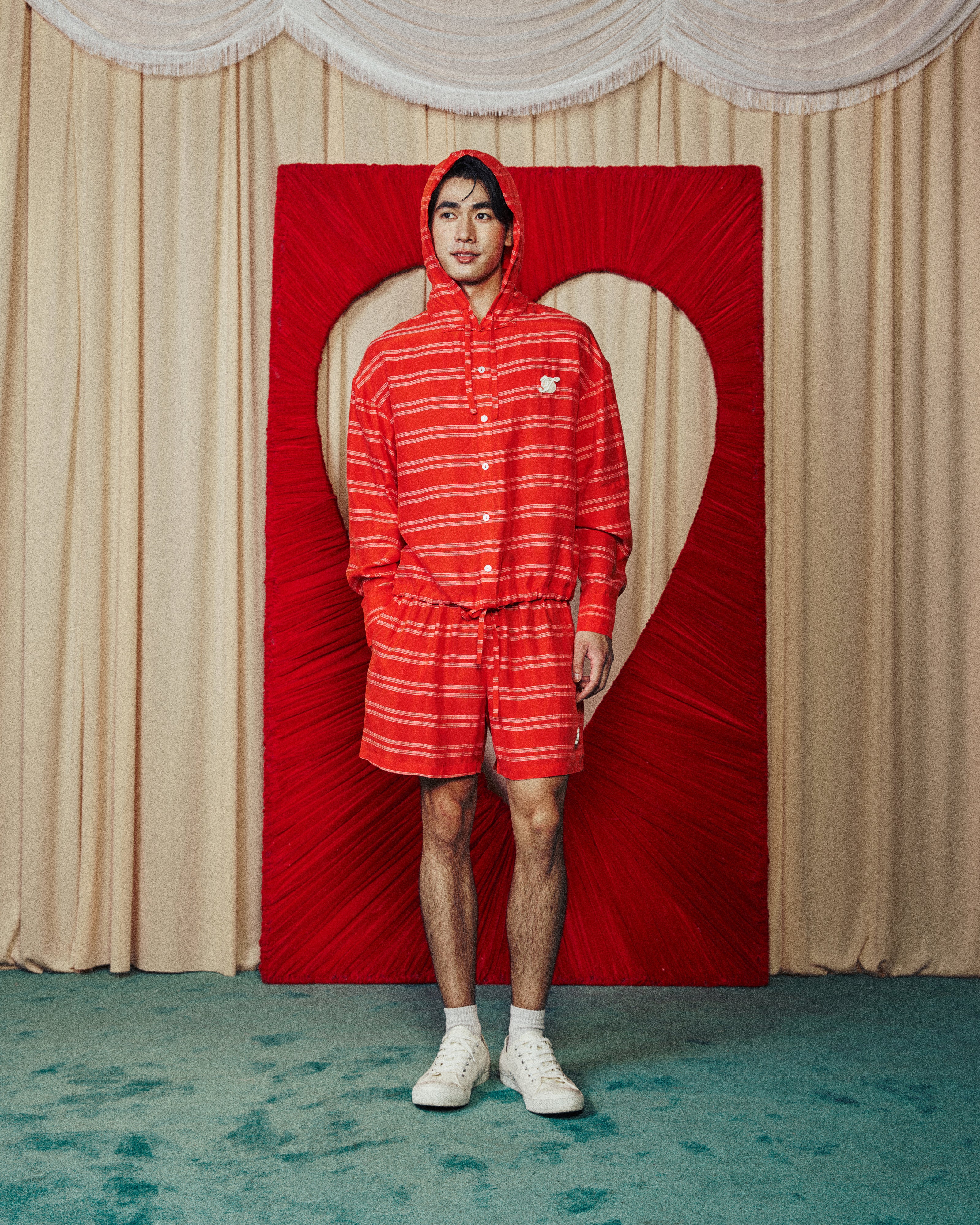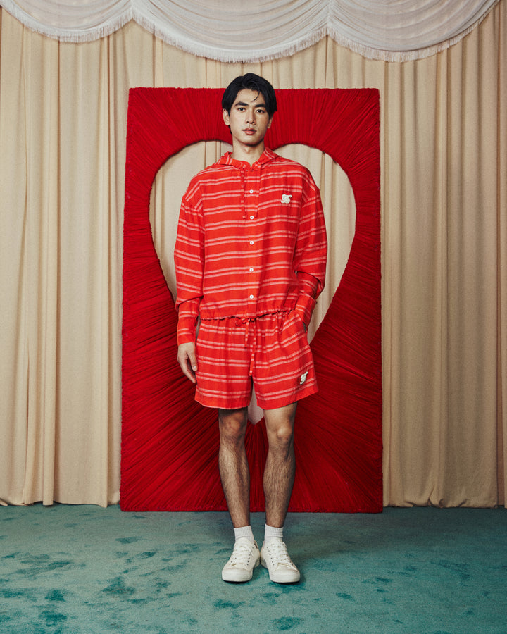Unisex Chinese Button Sporty Soft Hoodie Red