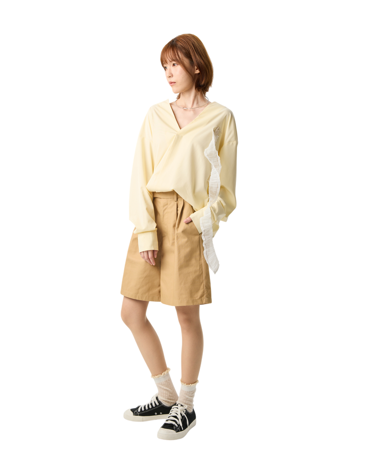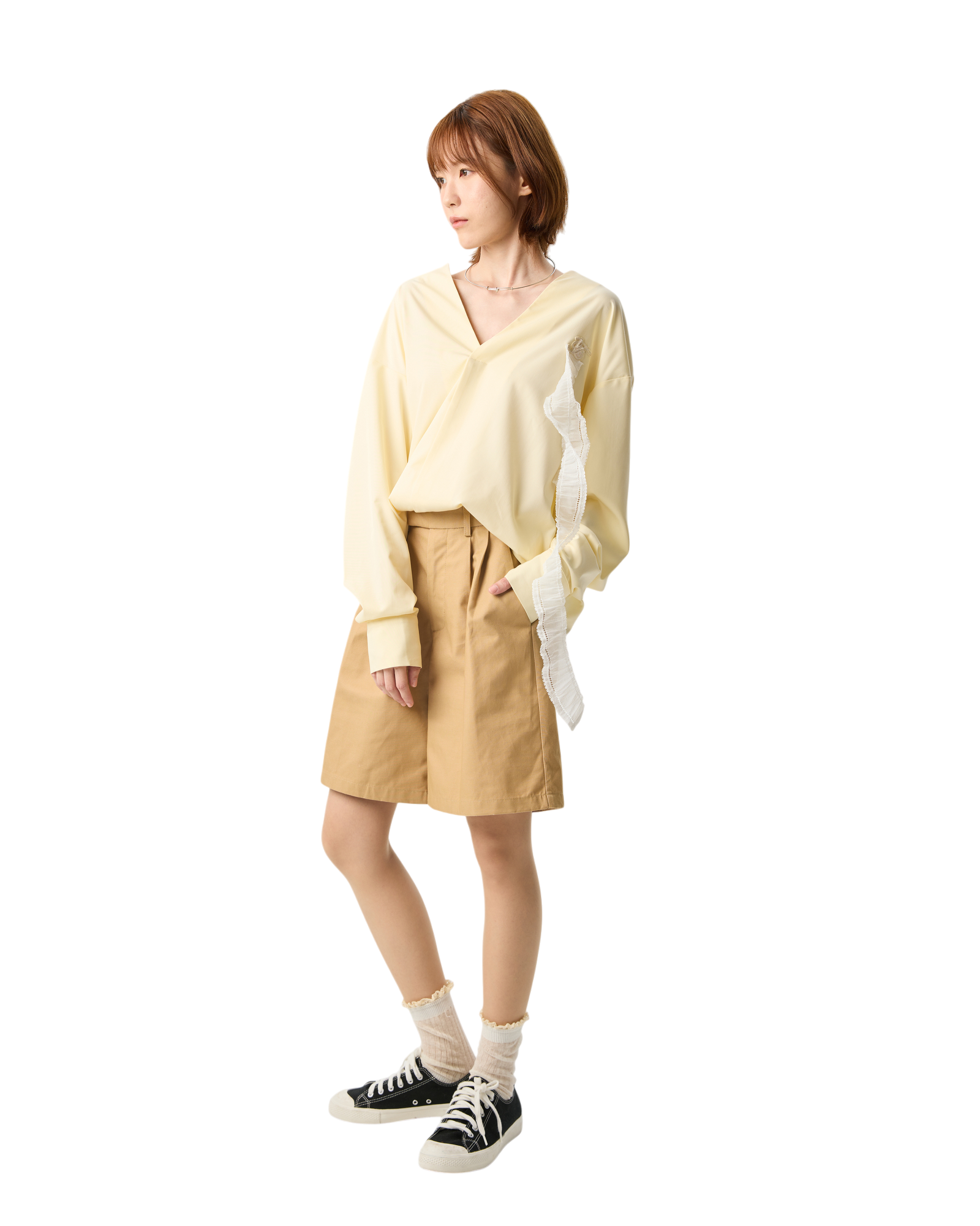 Women V-neck Long Sleeve Blouse With Lace Yellow