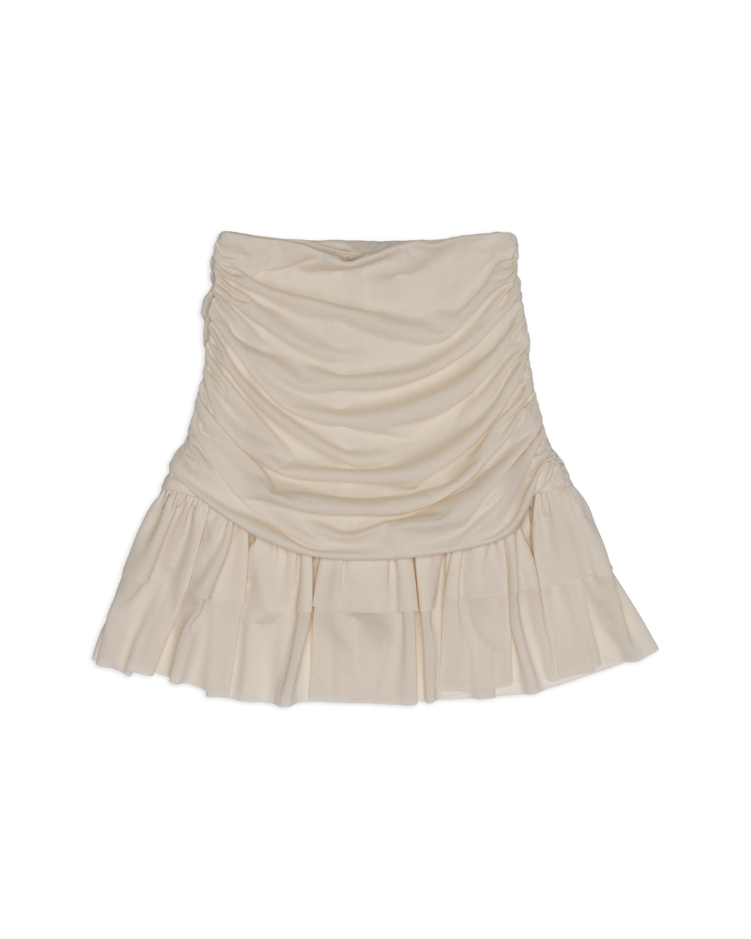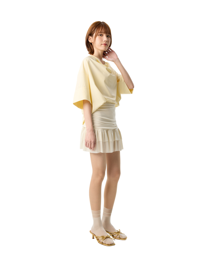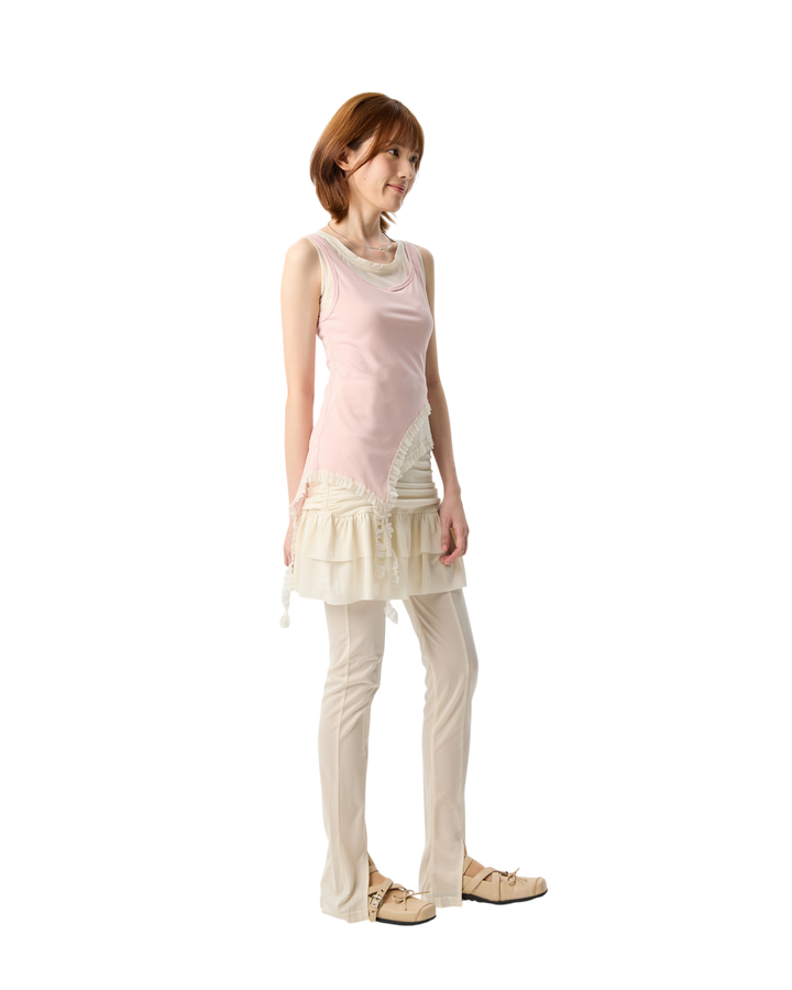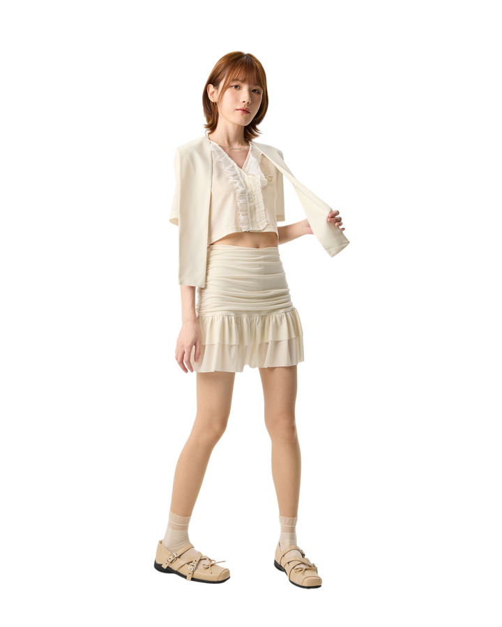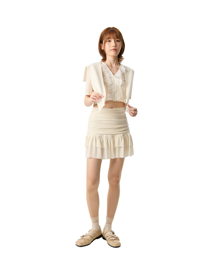 Lay Over Sheer Knit Cropped Top With Lace Cream