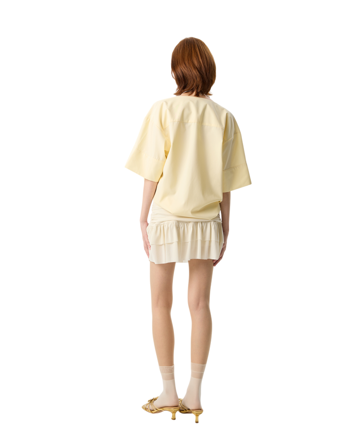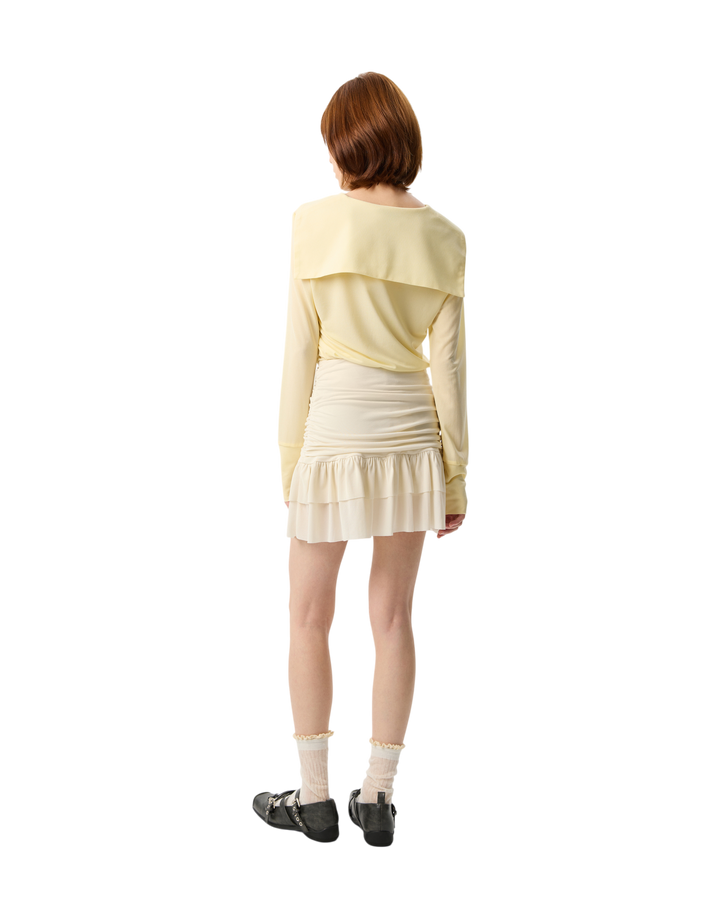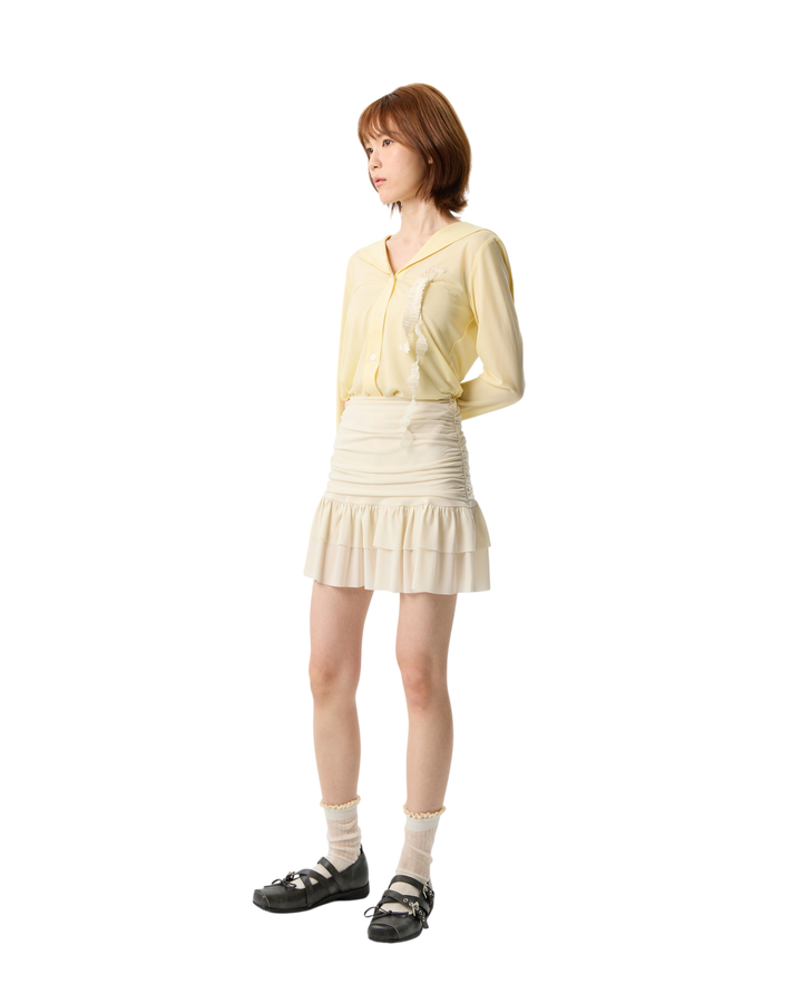 Women Longsleeve Sailor Blouse With Lace Yellow