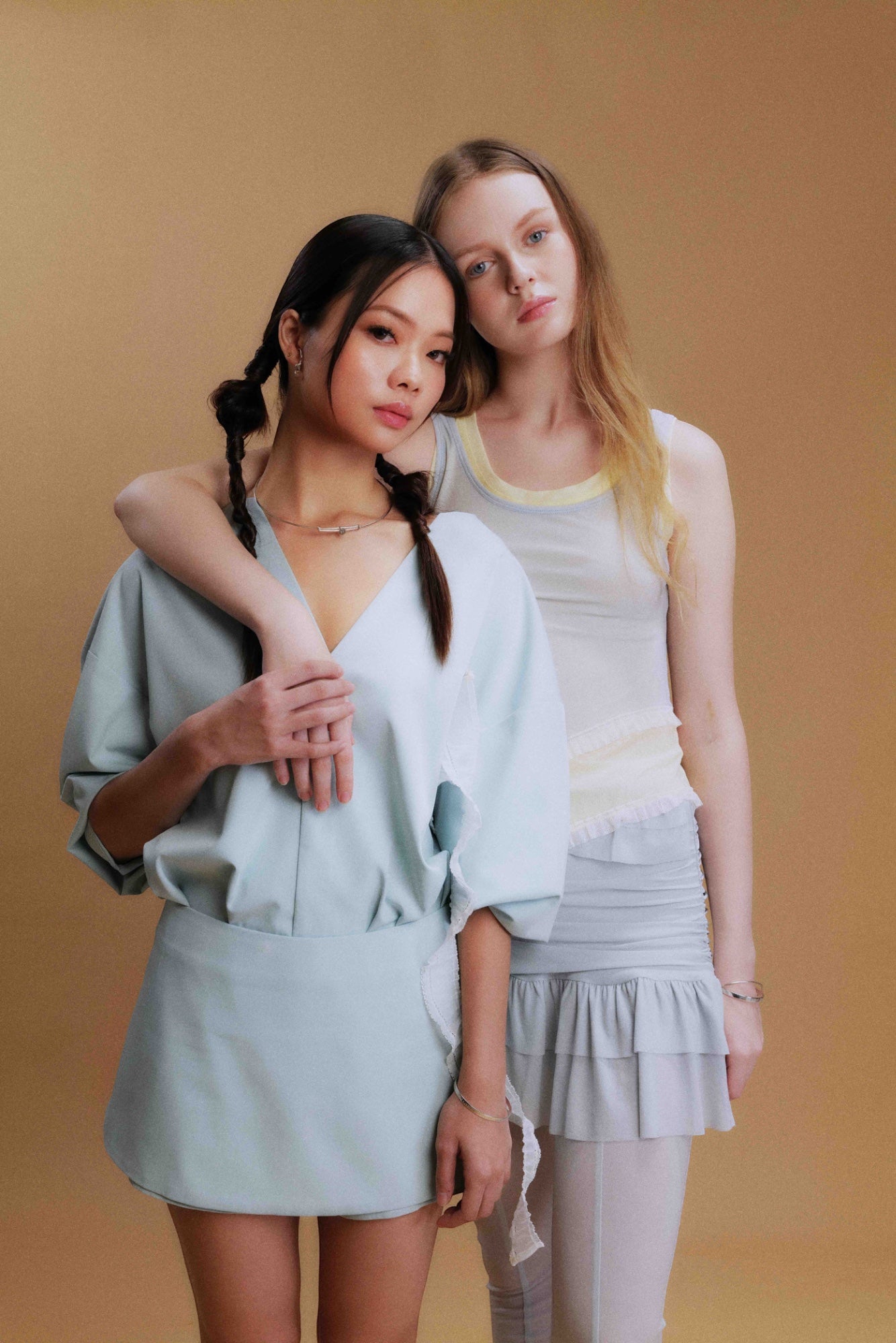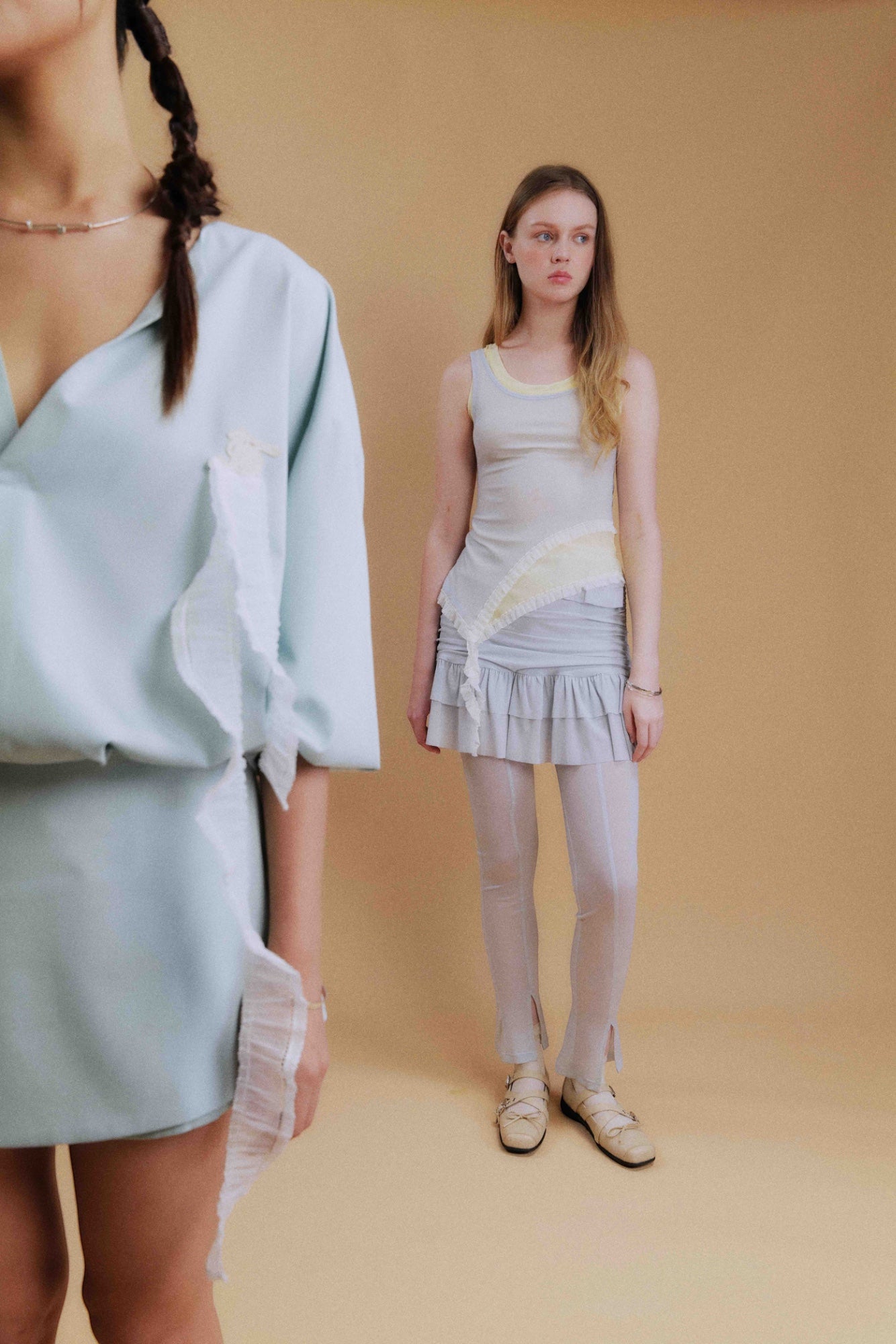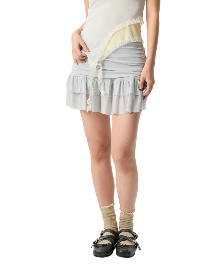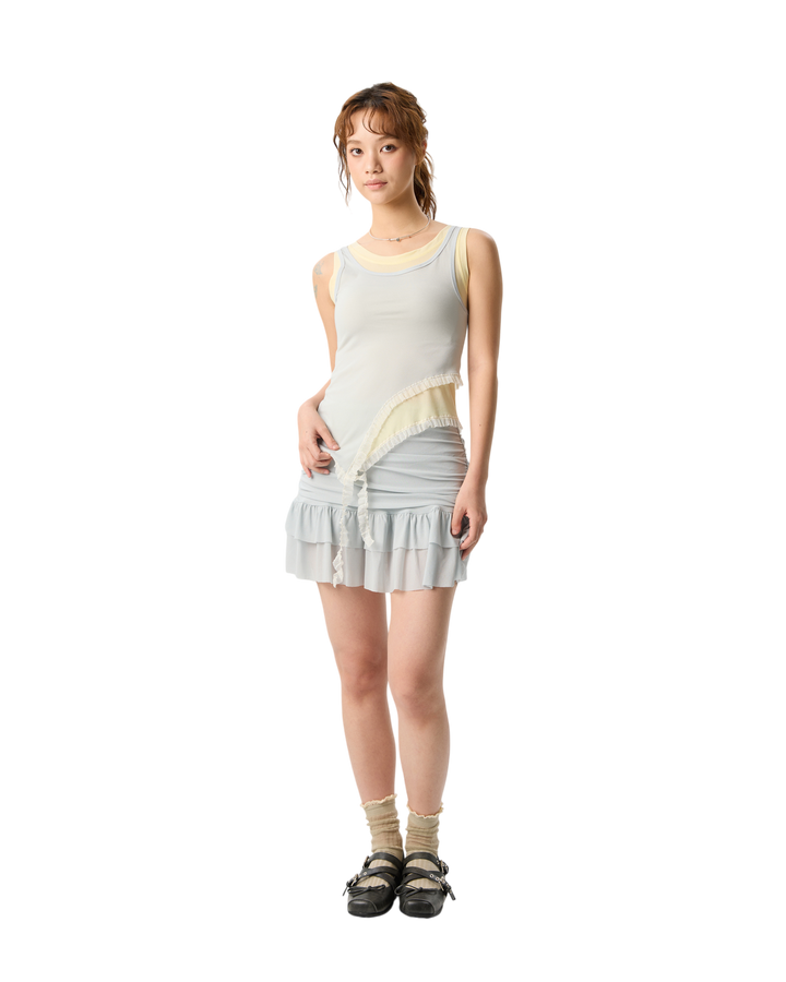 Lay Over Sheer Knit Cropped Top With Lace Cream