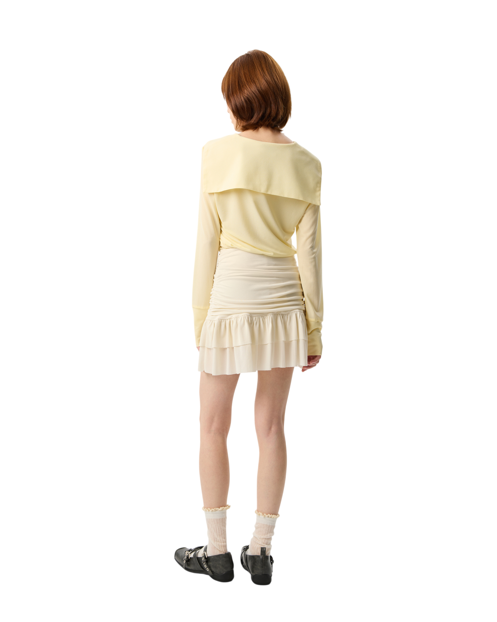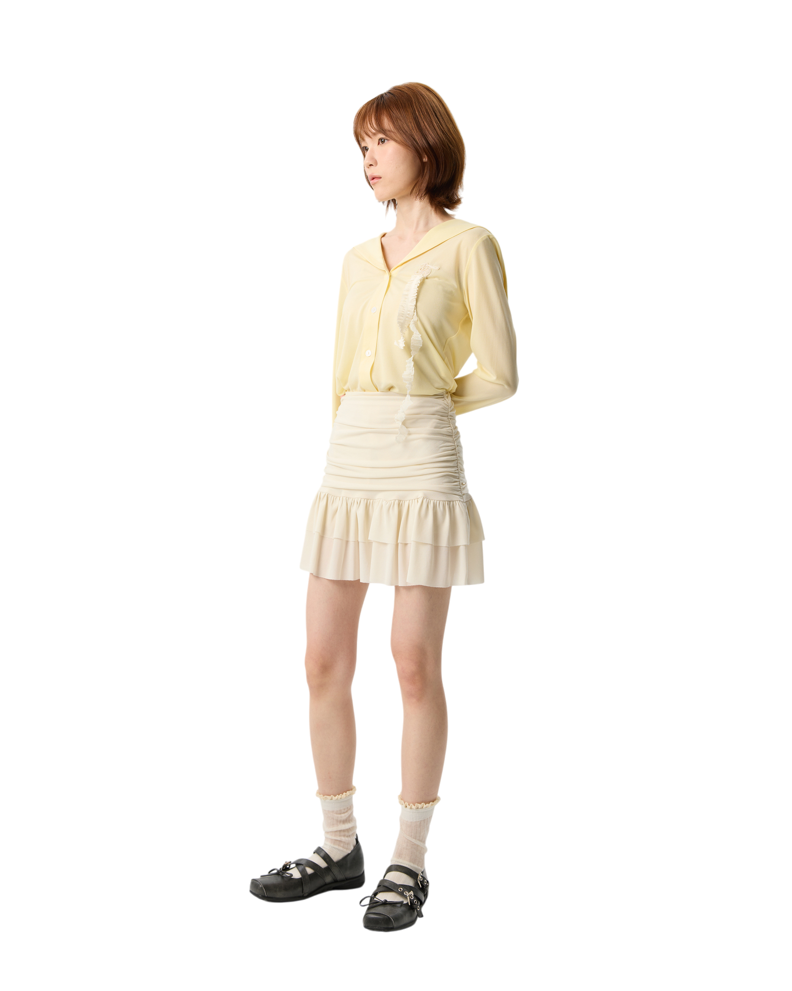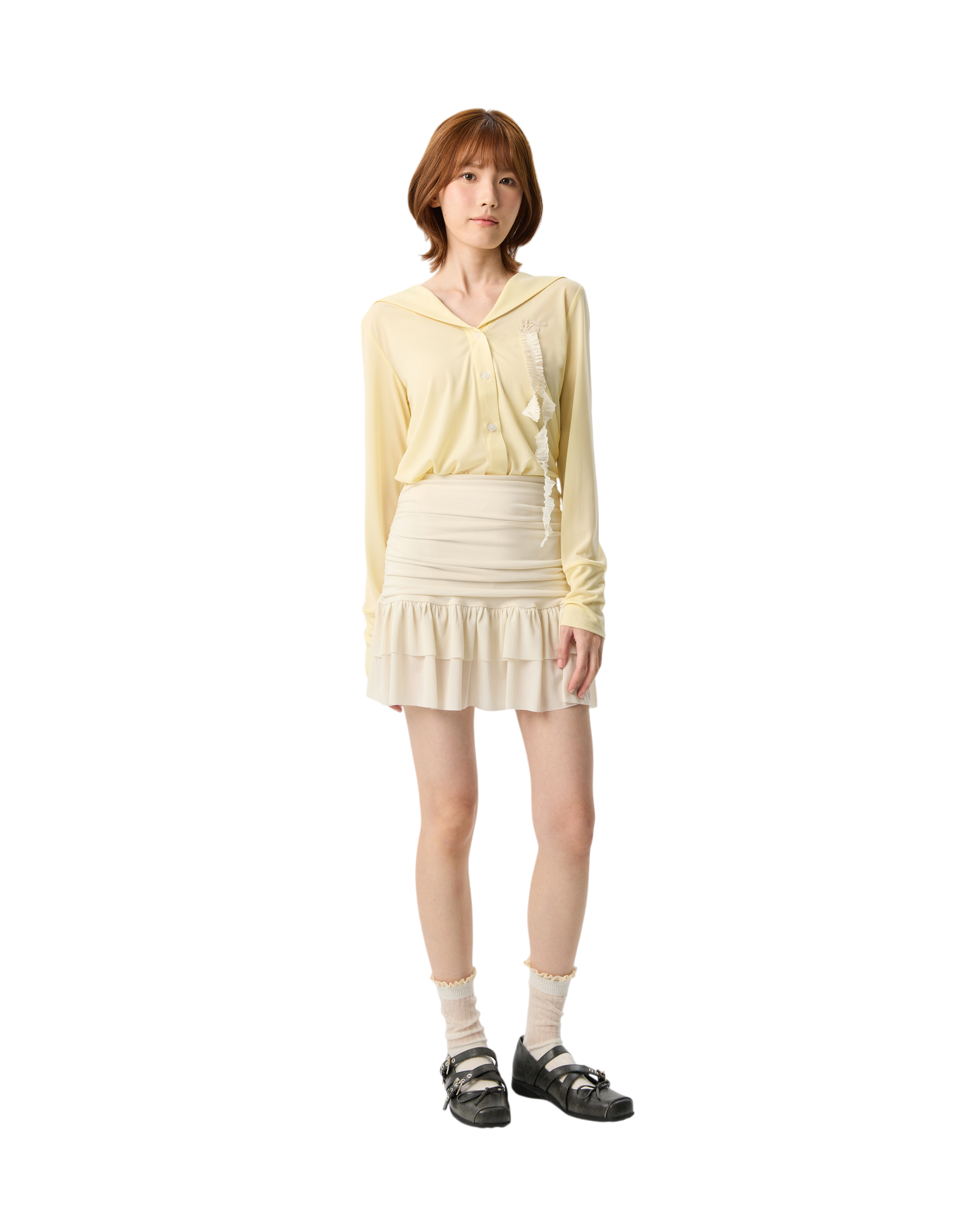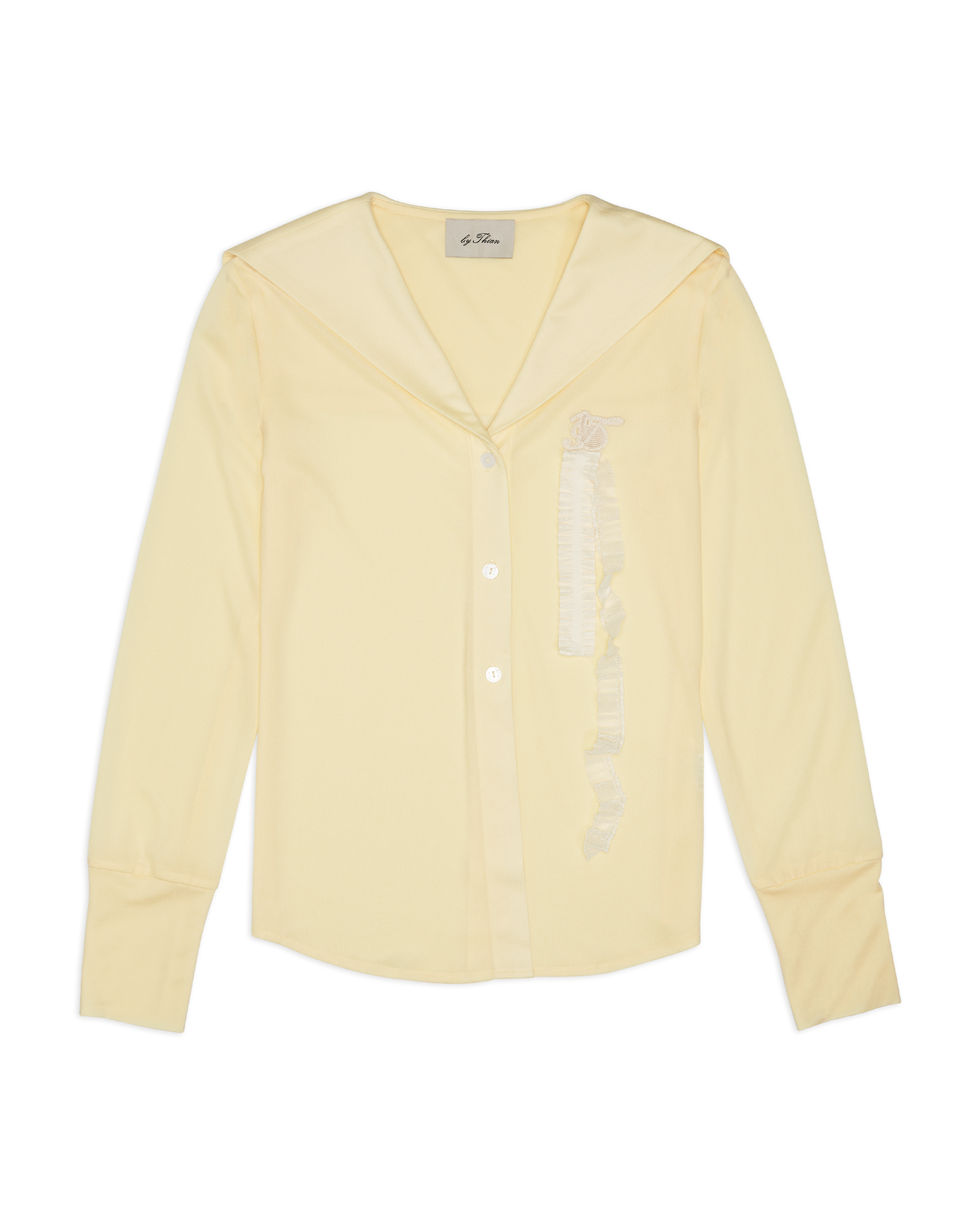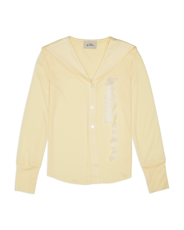 Women Longsleeve Sailor Blouse With Lace Yellow