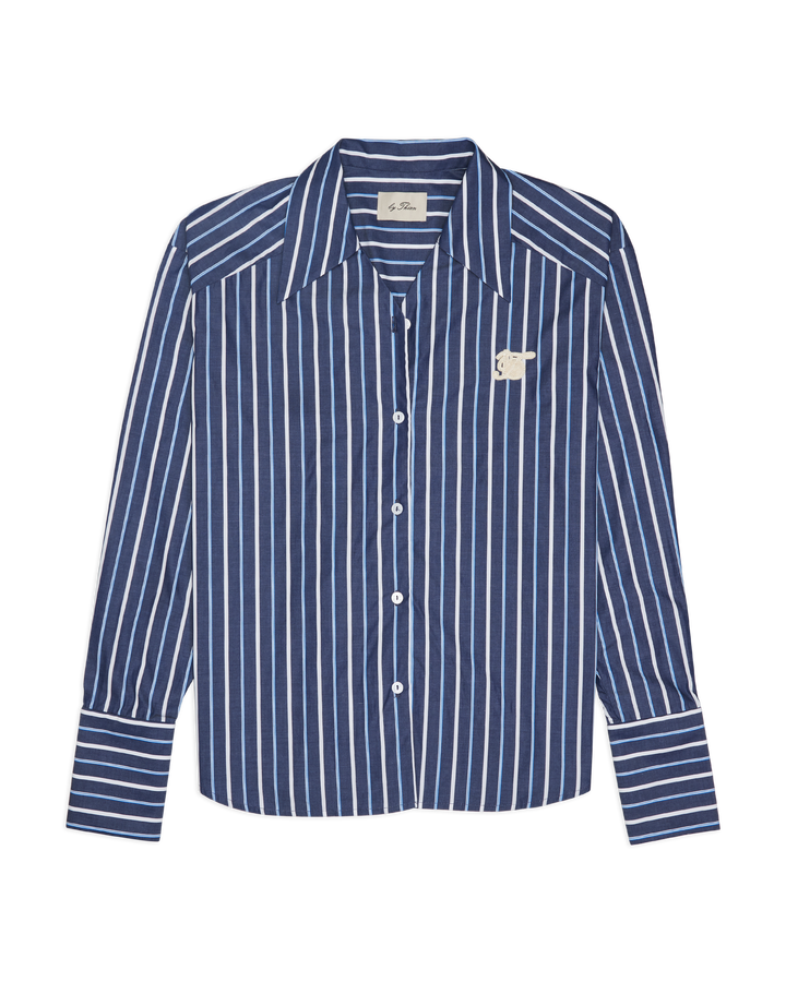 Women Stripe Shirt Navy Blue